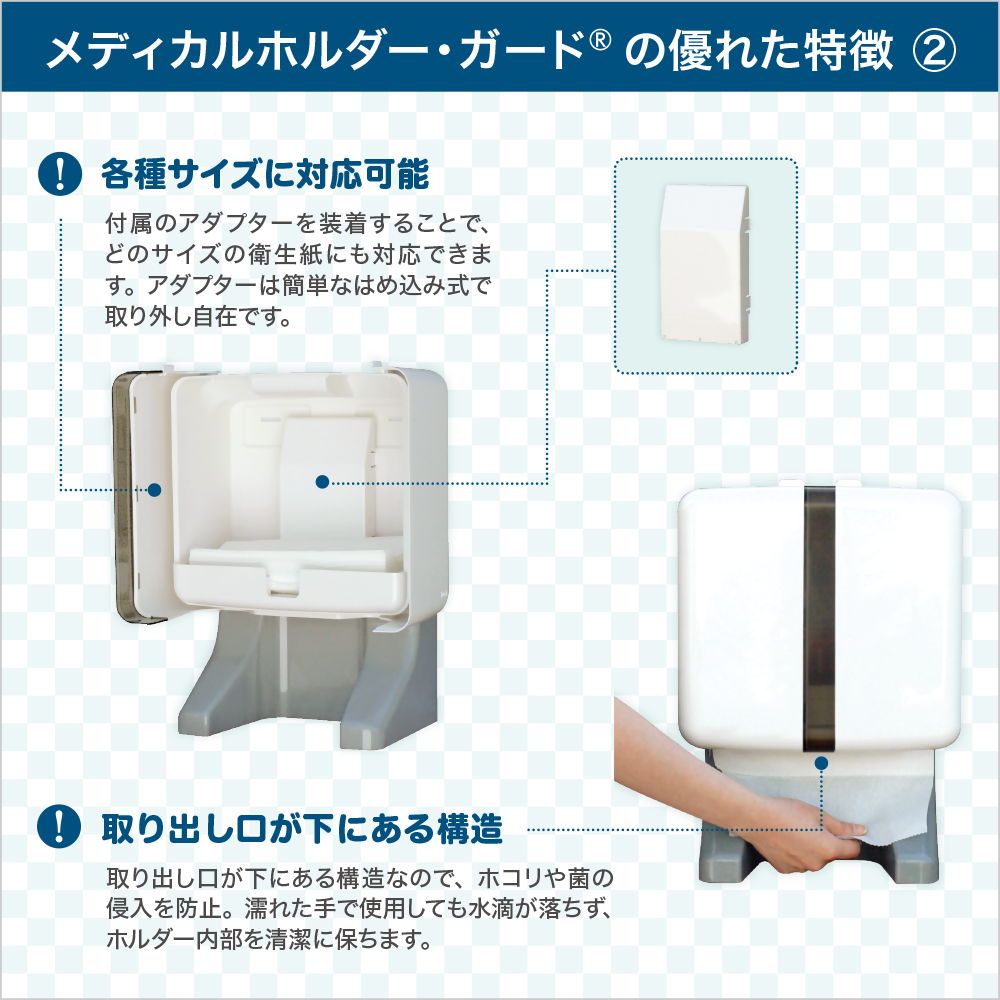 衛生紙専用ホルダー。片手で簡単に持ち運びできるので、どこでも衛生的にお使いいただけます。