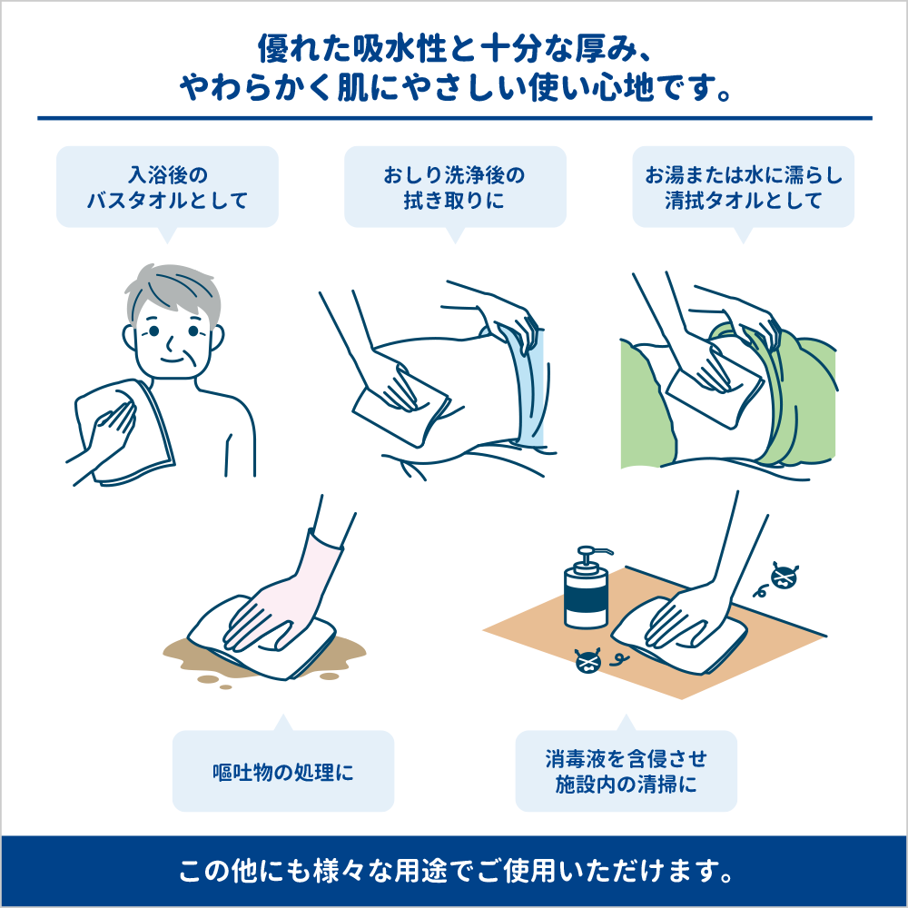 当サイトは、安心・安全で皆様の生活を守る商品、衛生紙(ハンドタオル)やそれを収納するハンドタオルホルダー、全身を拭ける衛生不織布(清拭用レーヨンウェットタオル)などを販売しております。