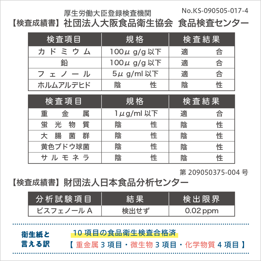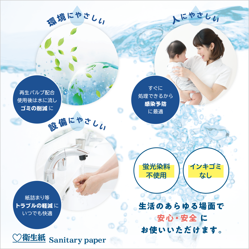 10項目の食品衛生検査合格済。エンボス加工でやわらかく吸水性抜群。水に流せるので紙詰まりなどのトラブルもなく、衛生的にお使いいただけます。ゴミの削減にも最適。