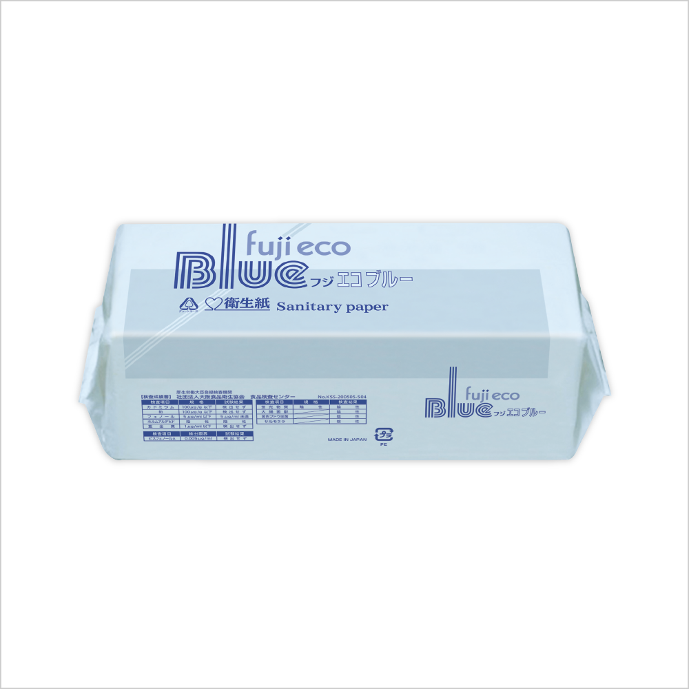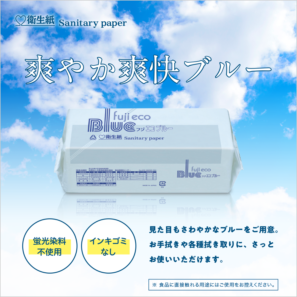 再生パルプ100%で環境にやさしく、さらに10項目の食品衛生検査合格済。どこにでも馴染むさわやかなブルータイプ。エコノミーサイズ。
